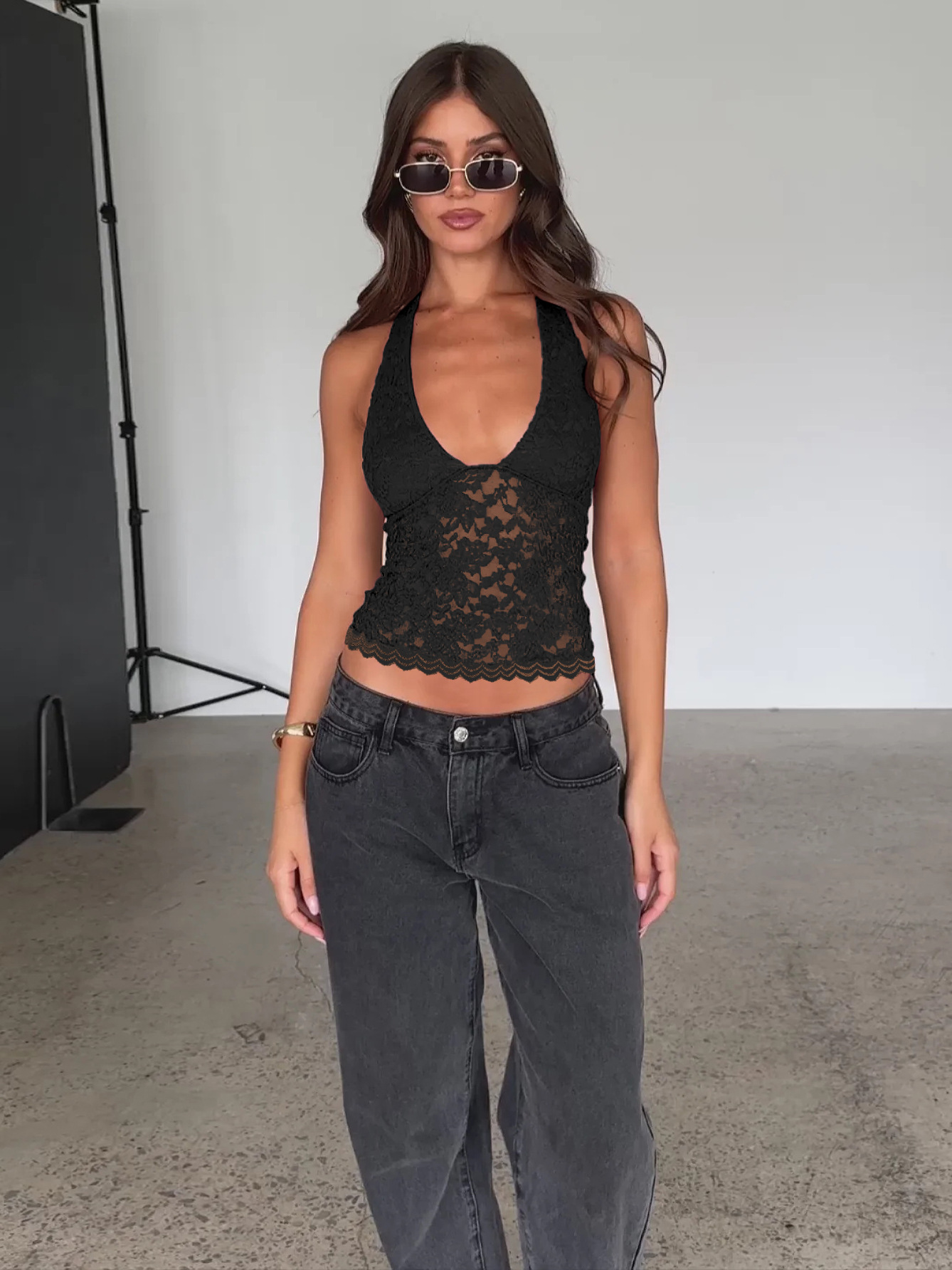 2025 Primavera y verano Termino transfronterizo NUEVO COMERCIO FRANSIONAL Niñas Hot Lace Hollow Lace Slim Sexy Vest Vest Versátil Top para mujeres